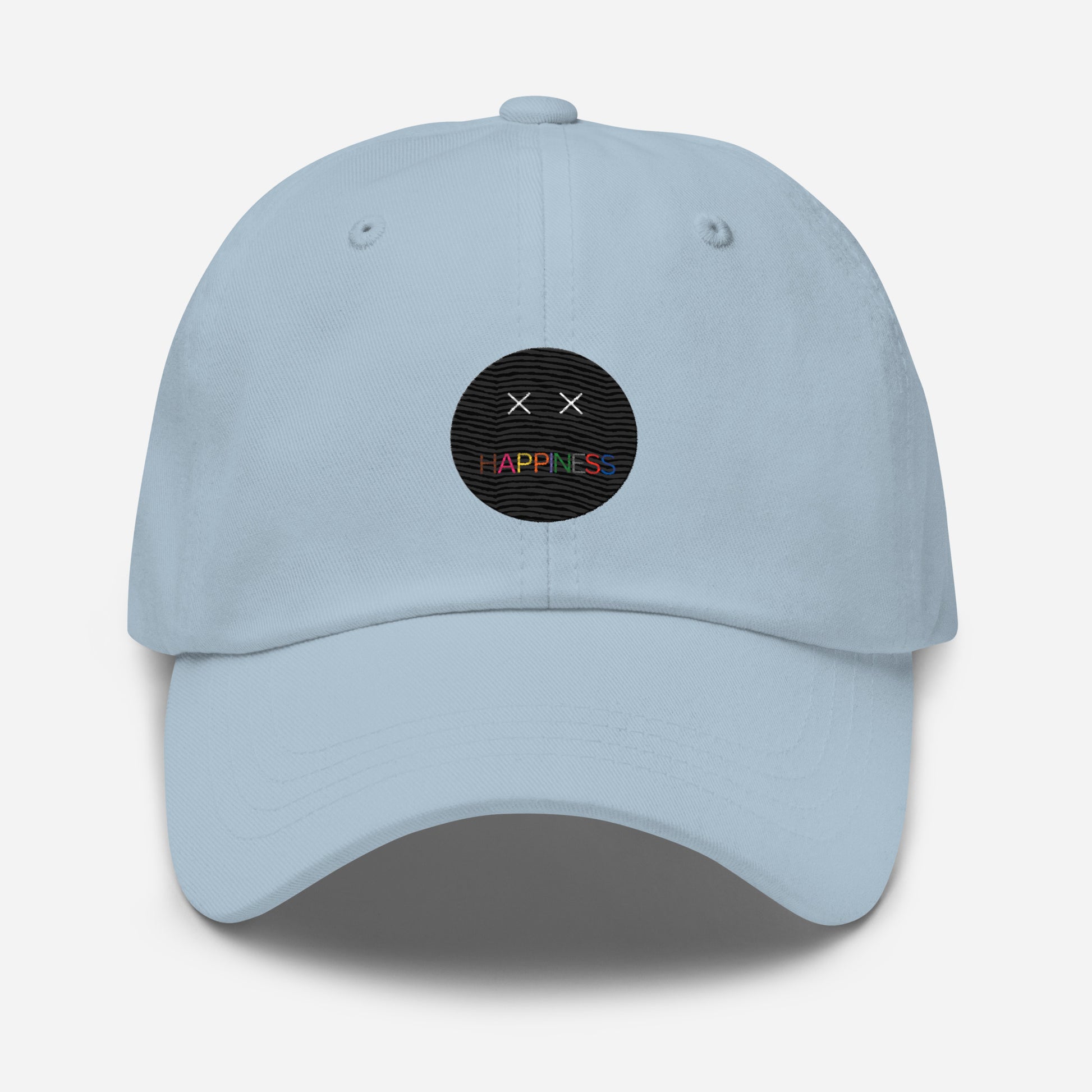 The embroidered hats take a little longer for us to make; you can expect to receive your item in 10 to 15 days. Our embroidered HAPPINESS hats suit any occasion looking clean on any outing. This hat has a low profile with an adjustable strap and curved visor. This color design differs from our classic logo, with the colors fading into multiple colors rather than each letter being a specific color giving off a more classic authentic feel.