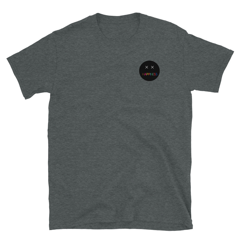 This HAPPINESS design can make any outfit look even better. With our classic logo you can make sure to brighten up anyone's day bringing awareness to mental health. The double stitching on the neckline and sleeves is added for more durability.